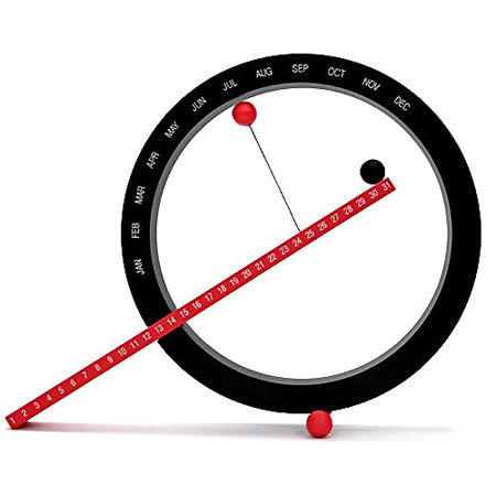 Kalender ini dirancang oleh Gideon Dagan dicetak dengan menggunakan plastik injeksi dan magnet. kalender ini diperuntukkan untuk New York Museum of Modern Art pada tahun 1998, uniknya kalender ini dirancang untuk dapat digunakan dari tahun ke tahun (sepanjang masa). Untuk menandai tanggal dan bulan Cukup memindahkan dua bola magnetik.