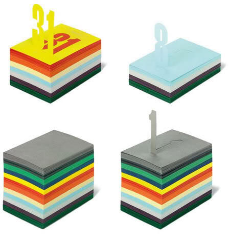 Fedrigoni perusahaan kertas meminta bantuan Studio8 Design untuk kalender tahun 2010 mereka, desain yang dihasilkan sebuah kalender gaya Post-it dengan 1 hari perhalaman-, satu warna untuk satu halaman. cara menggunakannya dengan mendirikan angka (hari) setiap harinya selama satu tahun. paling tidak cukup bikin anda punya kegiatan di pagi hari