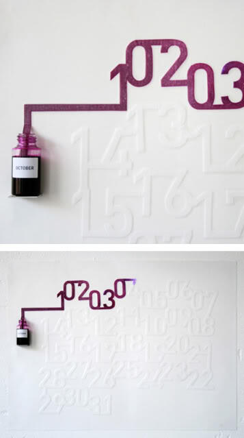 Dirancang oleh Desainer Spanyol bernama Oscar Diaz. Kalender ini menggunakan tinta kapiler yanga akan menyebar pada angka-angka setiap harinya untuk menampilkan tamggal baru. Jadi, Anda hanya perlu menggantikan kertas dan tinta setiap bulan. Apalagi tinta adalah warna yang berbeda, tergantung pada persepsi kita tentang cuaca pada bulan itu.