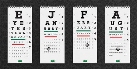 Creative Calender 2010 didesain Oleh Andrew Ackroyd. Kalender ini dikhusukan kepada mereka yang terbiasa untuk mengetes kemampuan mata. sekilas akan terlihat seperti eye charts di Klinik Mata.
